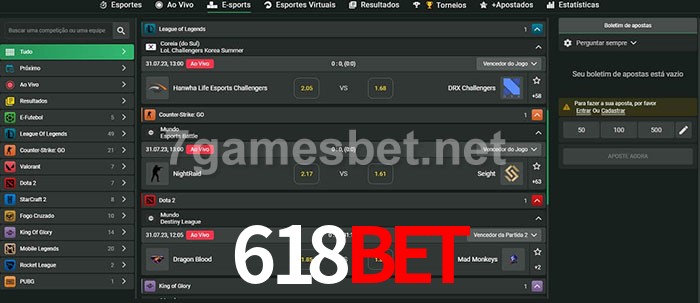 O 618Bet oferece uma grande seleção de opções de apostas em e-sports com probabilidades competitivas
